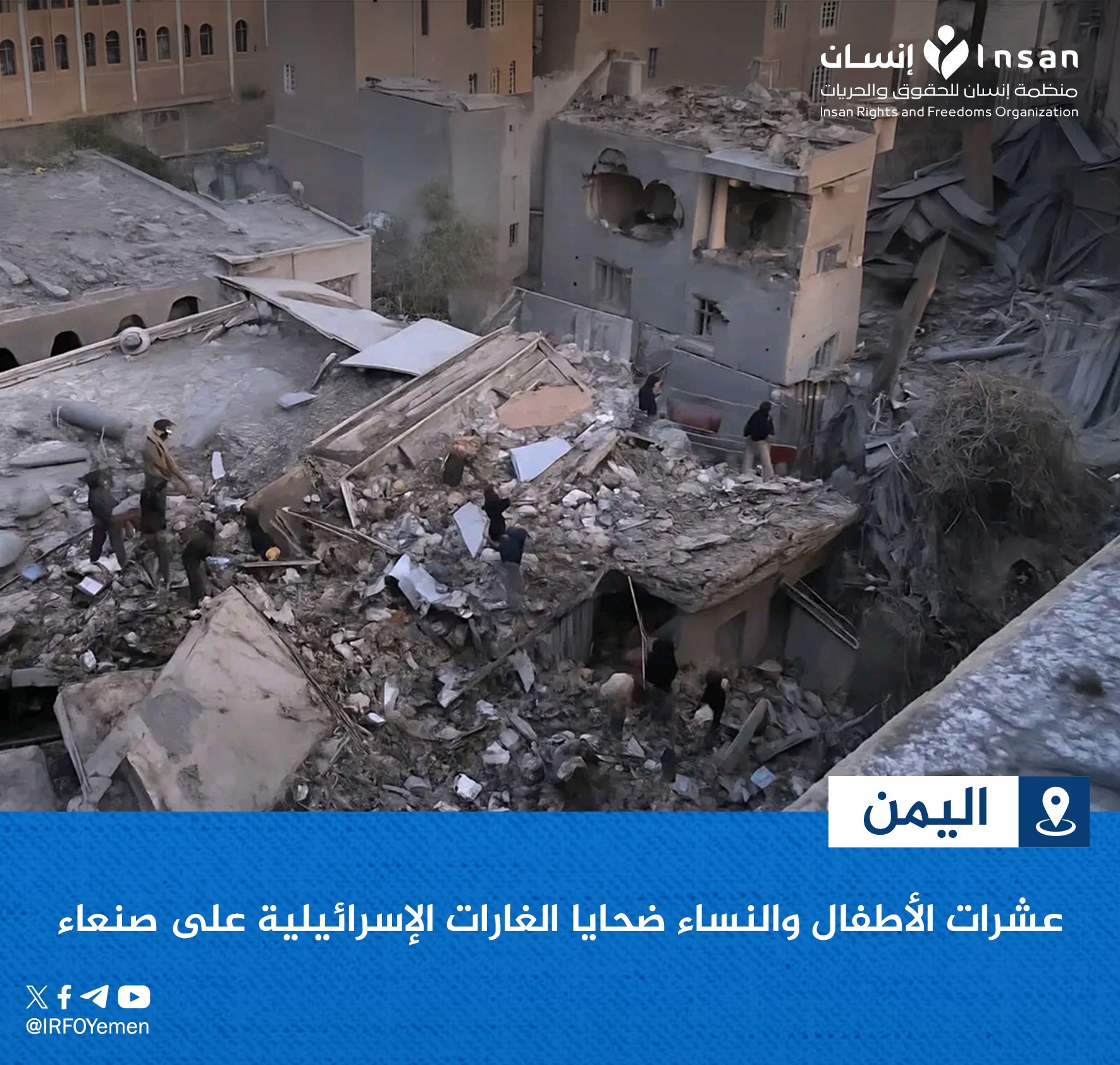 وكانت مقاتلات إسرائيلية قد شنت غارات مكثفة على عدة أحياء سكنية في العاصمة صنعاء، ما أسفر عن تدمير منازل وأضرار واسعة بالممتلكات المدنية.